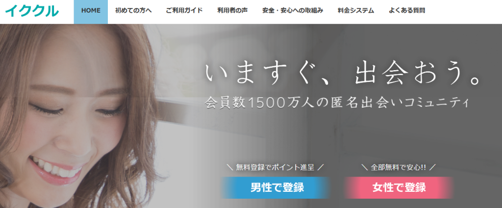 ![]() イククル | 業者に疲れた・安全重視の人 業者の少なさNo.1 人妻の多さ 意外と多い / 無料特典 800円分 |
